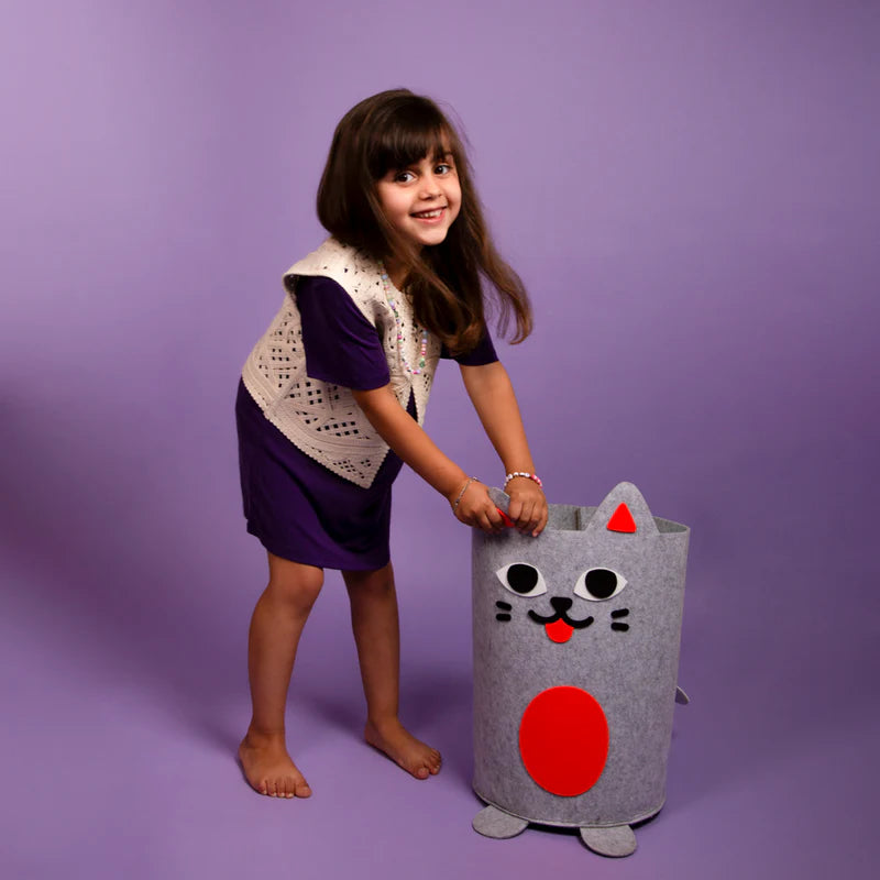 Tidy up in style with OMY's fun Kitty cat storage basket! Made from felt, the basket is soft, lightweight and sturdy. The cheerful design adds a playful touch to any room, while keeping all your little treasures, toys, books or laundry neatly organised.