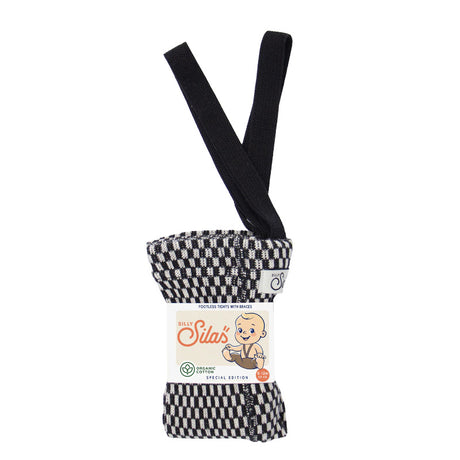 Adorable Silly Silas footless tights with braces for babies, toddlers and little kids. Made from ribbed organic cotton with a super-cute, practical high waist with elasticated braces. These make a super-sweet alternative to leggings.
