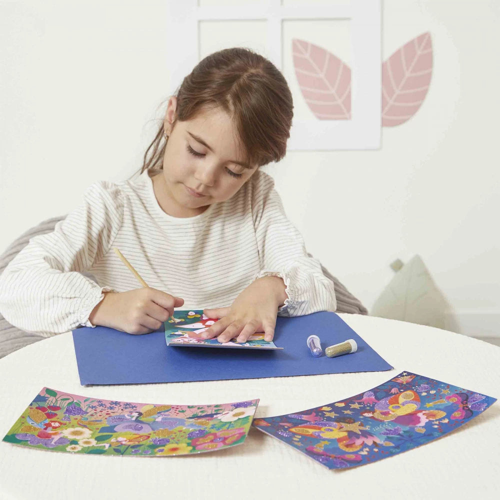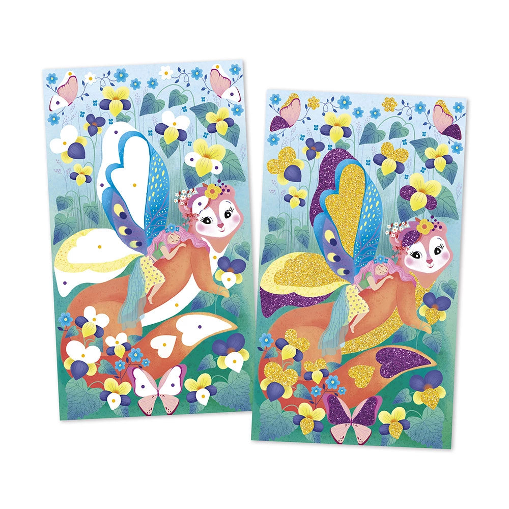 Young fairy fans will love Janod's Magic Fairies glitter craft set. Decorate three enchanting fairy pictures with biodegradable glitter. Simply peel off the paper from the areas to be glittered, then sprinkle on the gold and purple glitter.