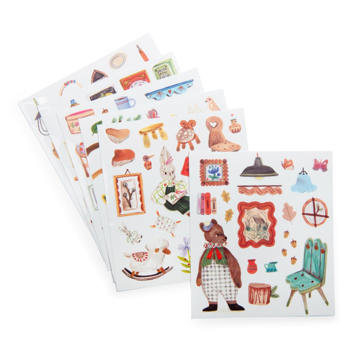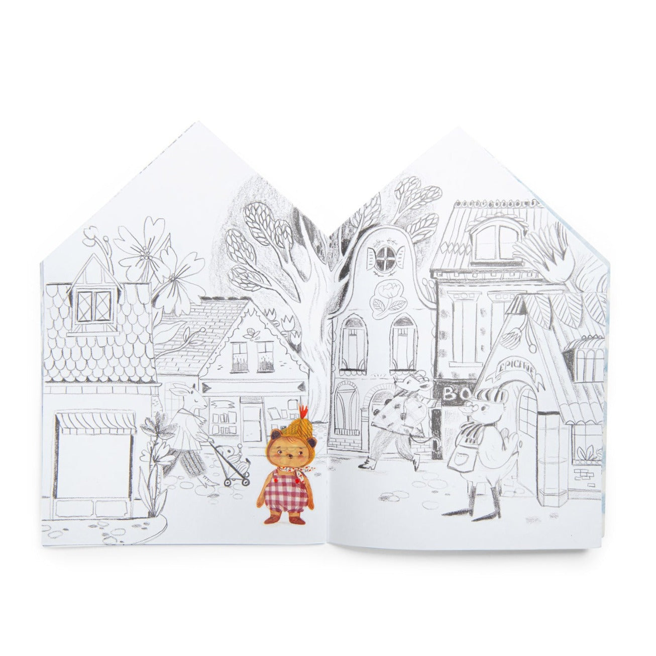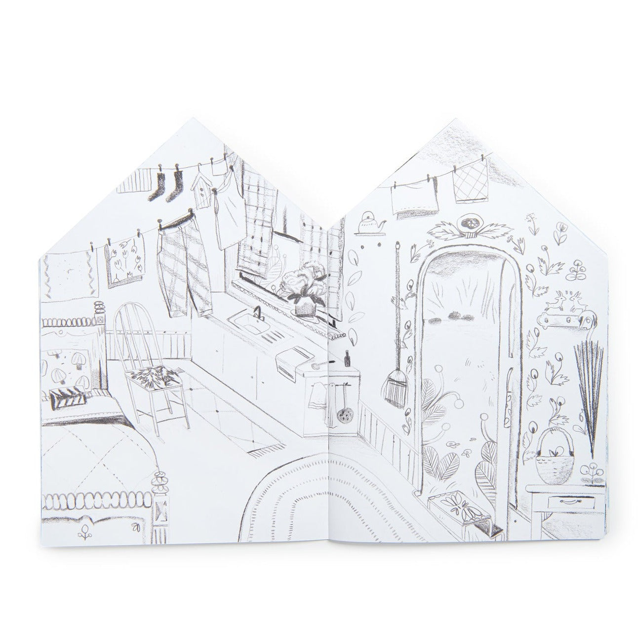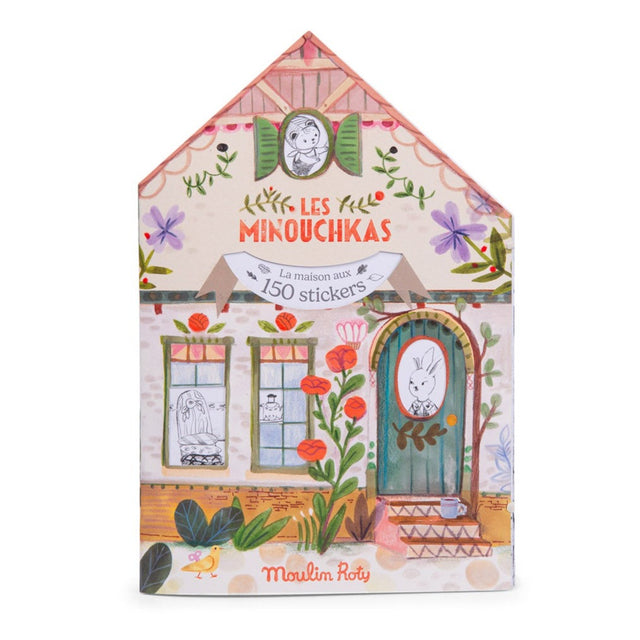 Lovely Moulin Roty colouring book shaped like a house, with 150 stickers, from the pretty Les Minouchkas collection designed by Lucille Michieli. Have fun colouring and decorating the different places visited by the charming Les Minouchkas animals and their friends.