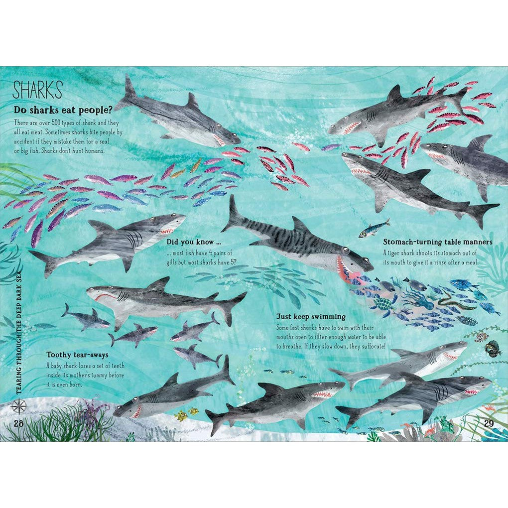 It starts by explaining how different types of animals can breathe and live underwater, and the different families to which they belong. Then, meet all sorts of slippery, shimmery, strange and monstrous species, from sea turtles and whales to sharks, rays and seahorses. Learn about different habitats, endangered animals, how to spot creatures on the beach and help save marine life.