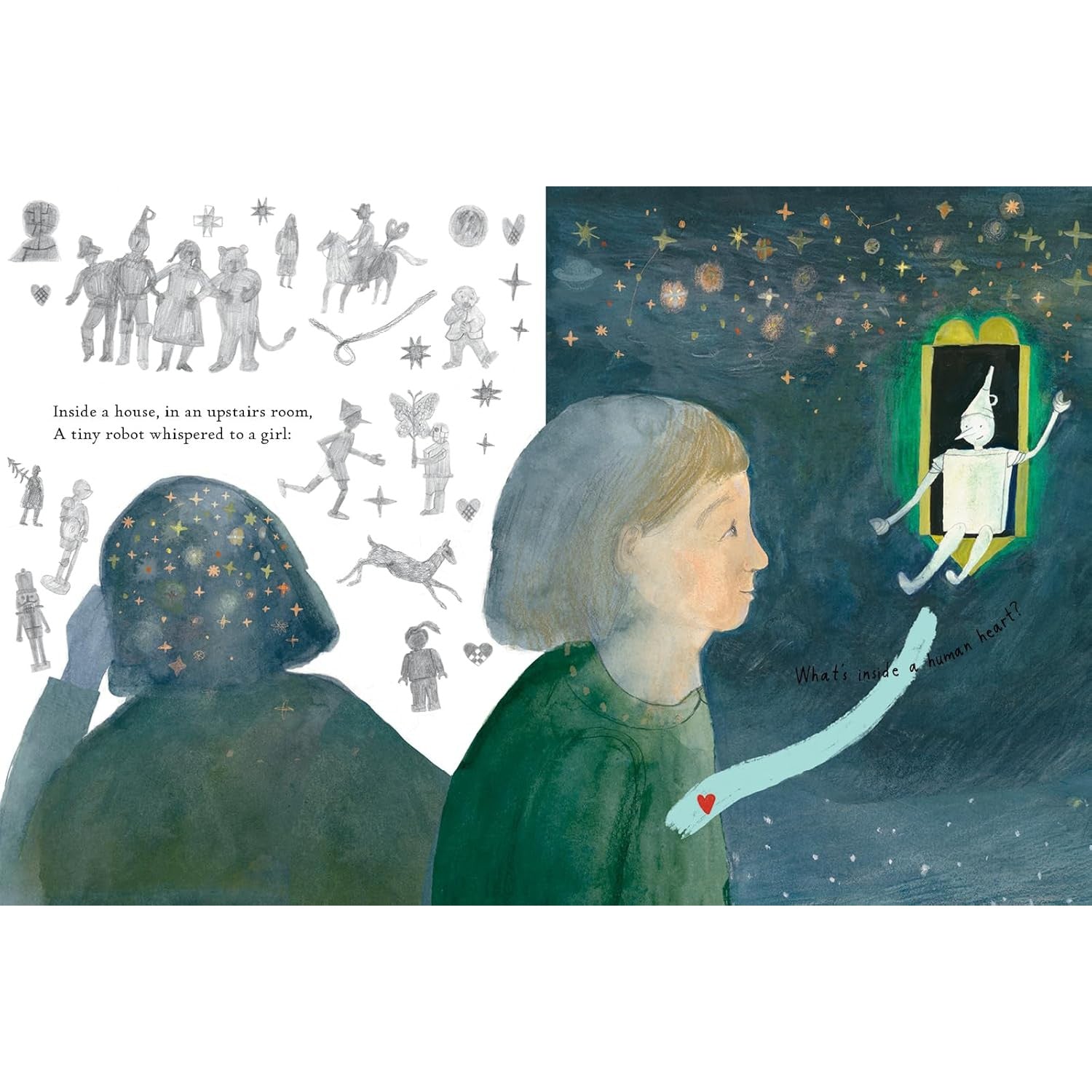 Set in a sleepy town on Christmas Eve, the story begins with a conversation between a girl and her toy robot, who wants to know what's inside a human heart. Describing it as a series of rooms filled with storybooks, the girl sets about building the robot a heart of its own by telling stories about the quiet little town she calls home.