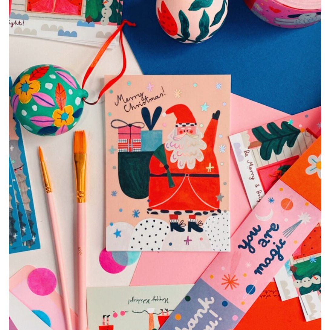 Send Christmas wishes this festive season with this 'Santa' greetings card from illustrator Daria Solak featuring a very jolly Father Christmas with a sack of gifts and lovely gold foil detail.