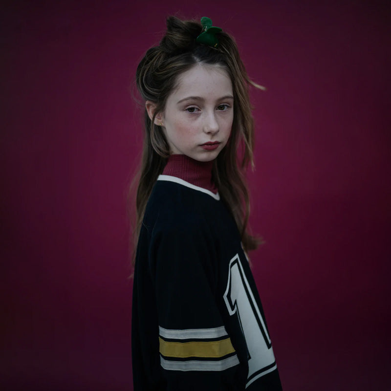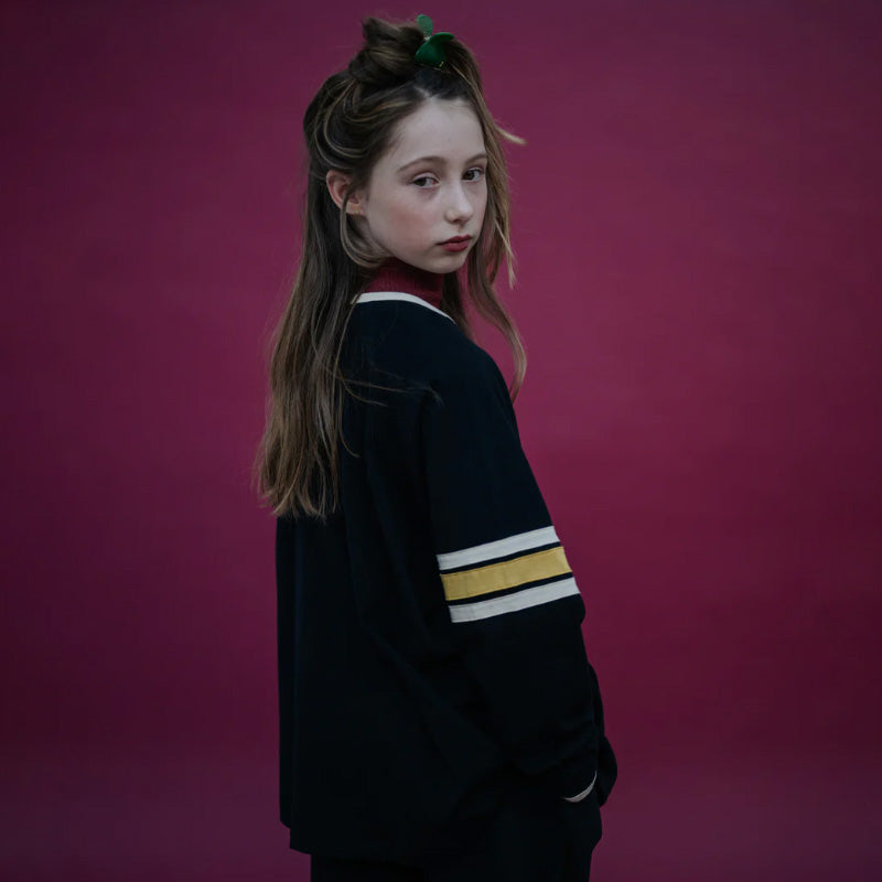 Brilliant Repose AMS ragland long-sleeved top in graphite night. Made from soft organic jersey, it has a bold '13' print on the chest, striped ribbed detail on the sleeves and colour in yellow and white. We love the varsity sports vibes of this top.
