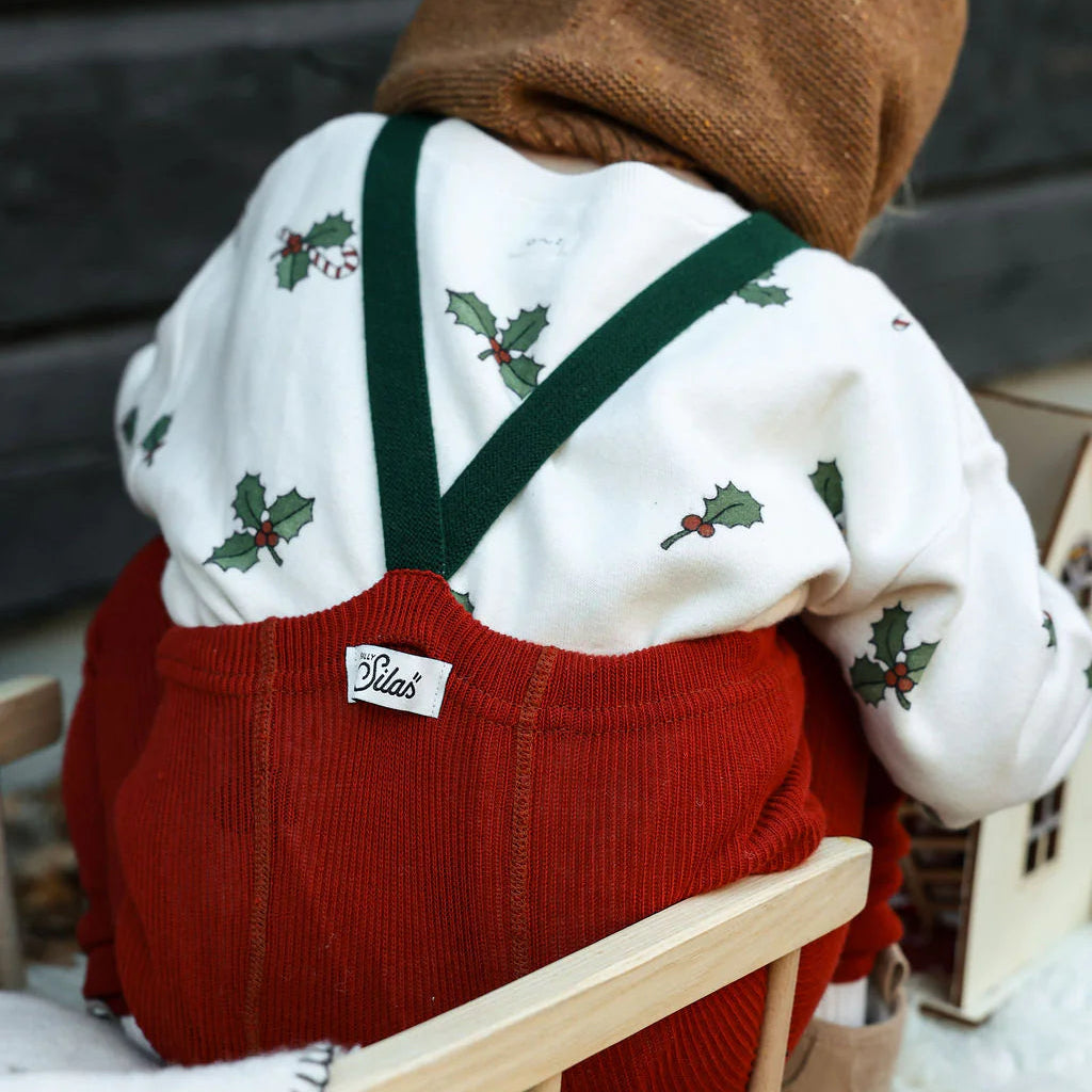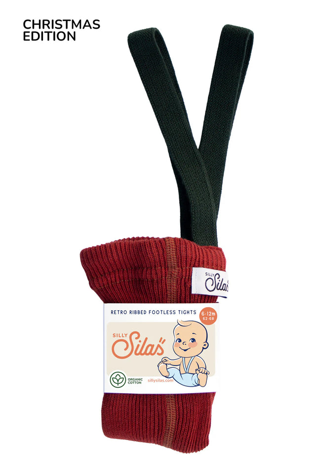 Silly Silas x Organic Zoo - Footed cotton tights with braces - Maple Leaf & Dark Forest Green