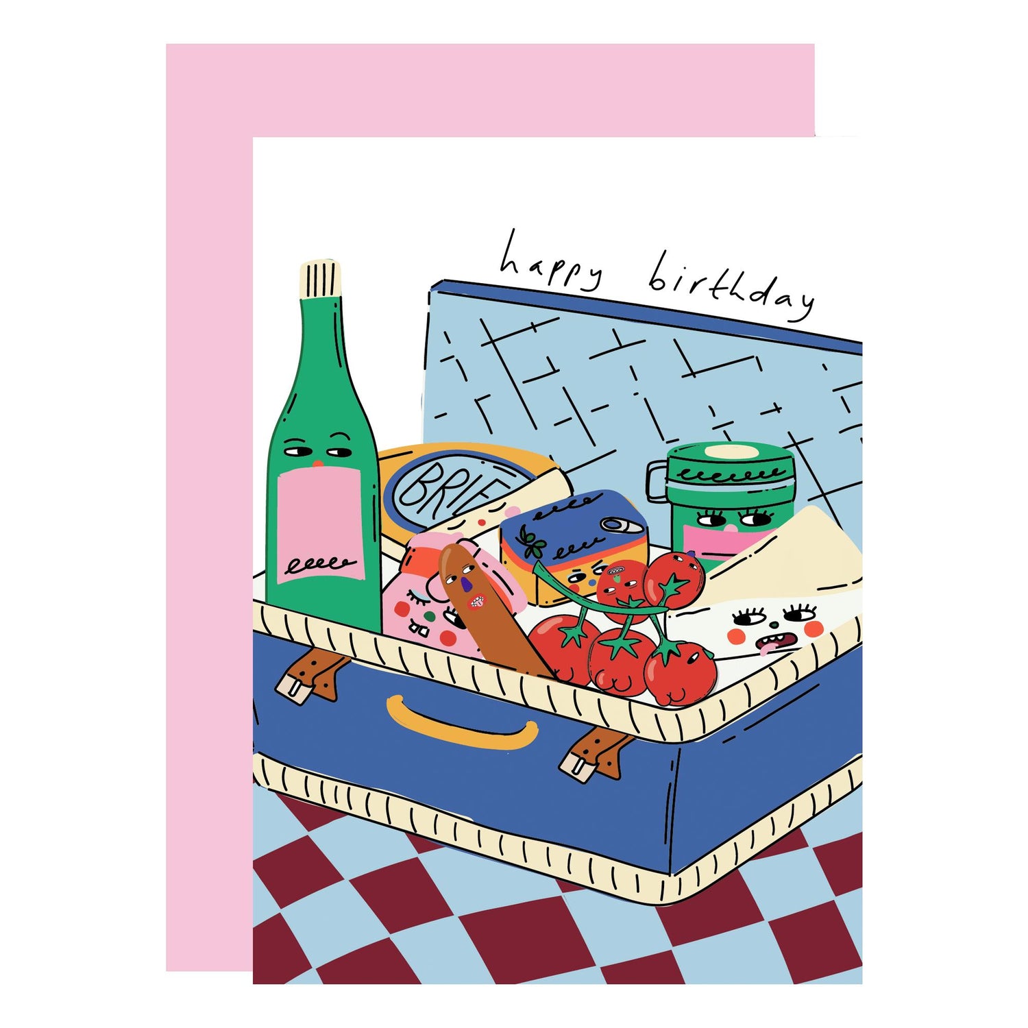 Celebrate a birthday with Eat The Moon's brilliant card featuring all the best picnic food essentials… Love the food's side eyes and the tomatoes' bums!