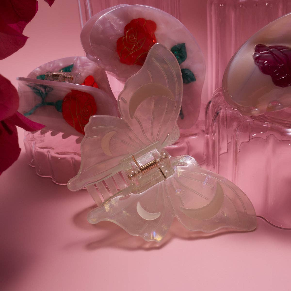 Not your average butterfly clip, a moth claw! This stunning Winona Irene hair claw is inspired by the beguiling lunar moth with moon details, and is made from cellulose acetate.