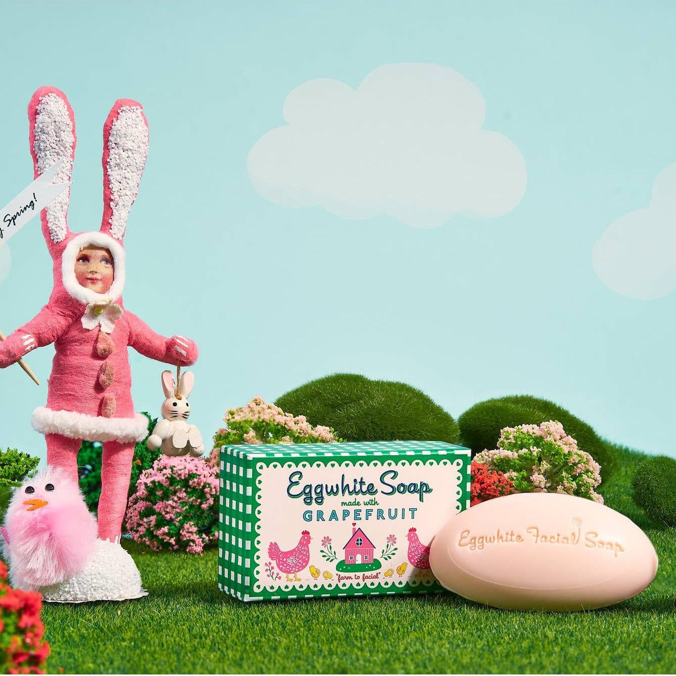 Farm-to-facial fun: Add some warm water to your Eggwhite bar to create a lovely, rich lather. Smooth over your face and neck. Let it work its magic for five minutes. Then, gently rinse off and pat dry. Enjoy the radiant glow!