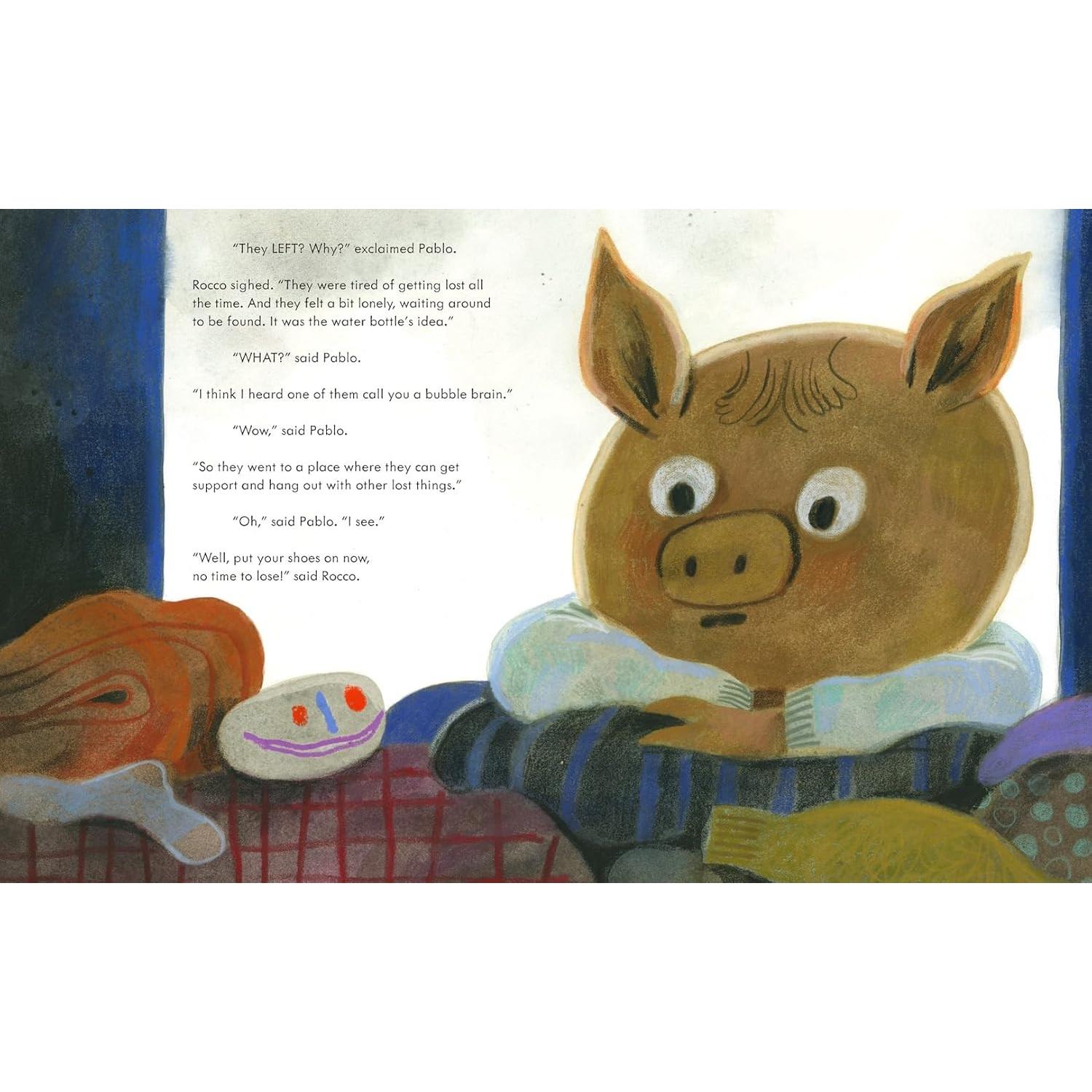 A baseball cap. A special sweater covered in dogs. A marble collection. The baseball cap, again. Pablo just can’t stop losing his things: at the bus stop, in the park, on a plane, everywhere! When his exasperated parents give him the responsibility of keeping track of everything, Pablo tries – he really does. But his room has become a frightful mess, and with show-and-tell just around the corner, Pablo needs to find his things now more than ever. Where have they gone to? And who can help him now?