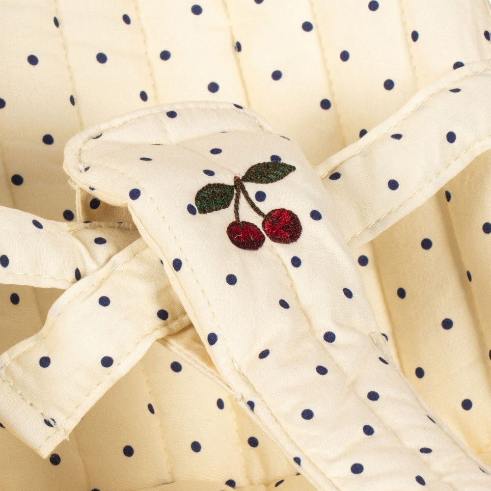 This is the Estate Dot version: polka dot print with embroidered cherry motifs and contrast red frame.