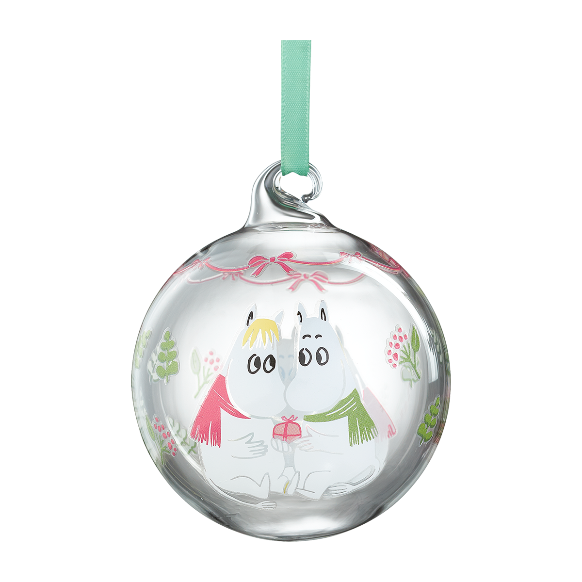 This 'My Darling' bauble features Moomintroll and Snorkmaiden exchanging gifts.