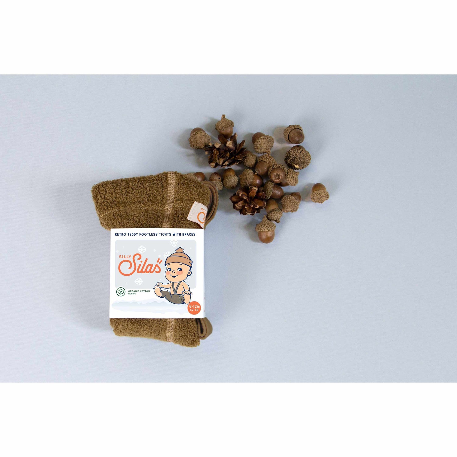 Silly Silas - Teddy warmy footless tights with braces - Acorn Brown