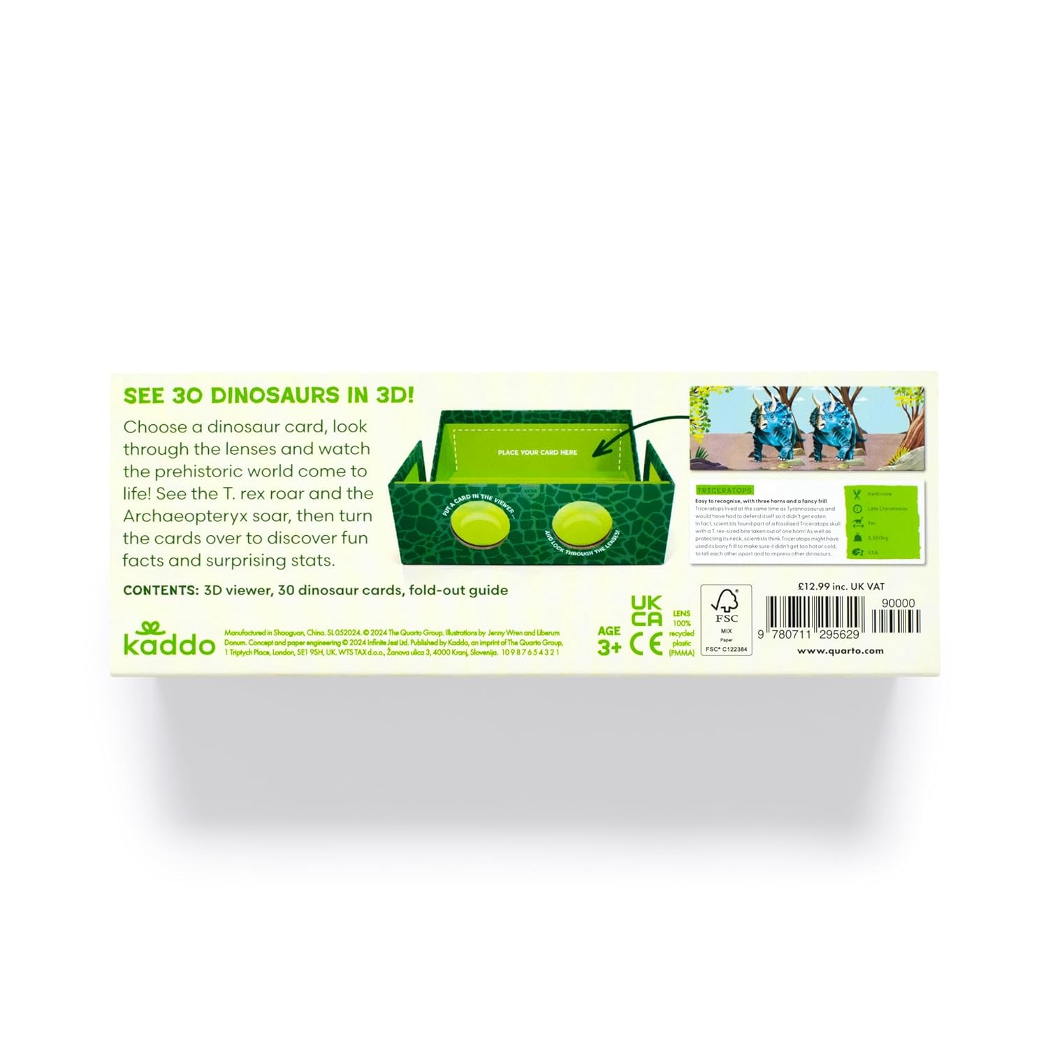 The immersive 3D viewer contains 3D lenses, 30 dinosaur cards, and an instructions and games leaflet.