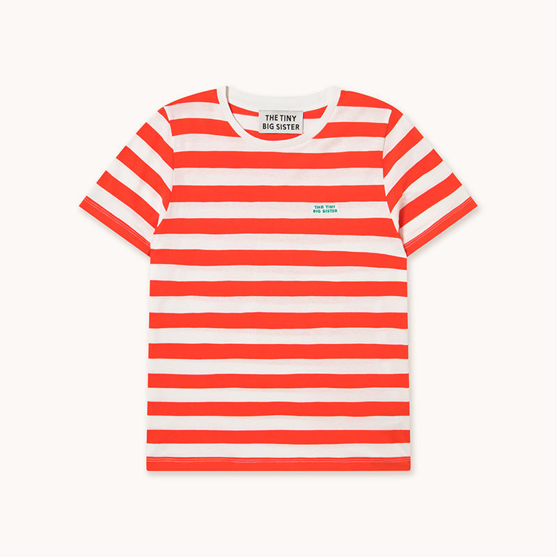 The Tiny Big Sister - Striped tee - off white / summer red