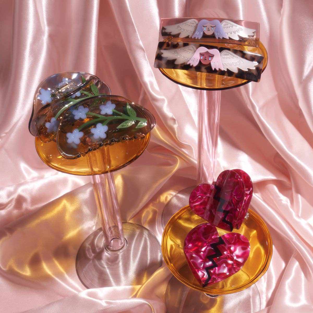 Each intricate design is cut from cellulose acetate, and meticulously assembled by hand to create a durable and timeless hair claw.