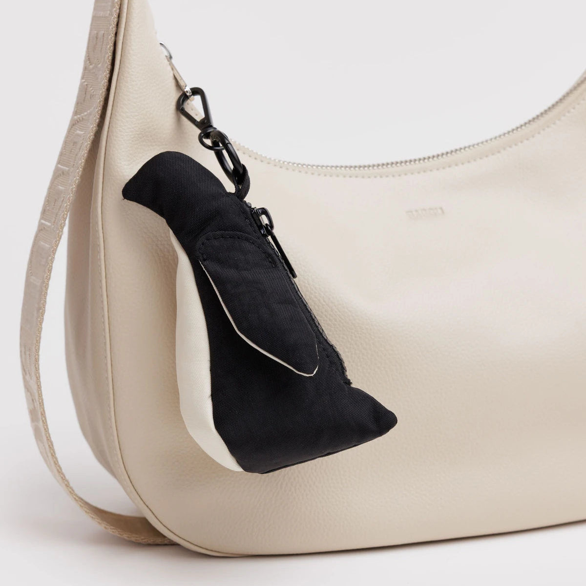 Adorable Baggu penguin bag charm with zip closure and a metal key ring and clip. Accessorise your bag with the charm and stash small items like lip balm and earbuds inside, to keep them within easy reach.