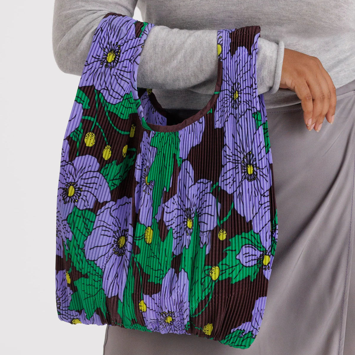 Baggu's special pleated version of their best-selling Standard bag can be worn as a dressier, fashion-forward, catch-all bag. Made from pleated recycled ripstop nylon, it can hold 30lbs.